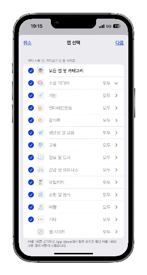 스크린 타임 메뉴별로 살펴보겠습니다.