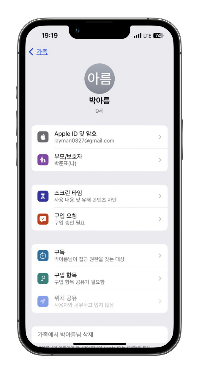 여기 까지 하시면 일단 가족 추가 및 스크린 타임 기본 설정은 완료입니다.
