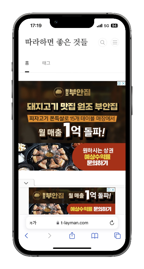 처음에 에드센스 설정에서 앵커 광고를 신청하고 나면 기본적으로 앵커 광고는 모바일의 상단으로 배치가 되는 것을 확인할 수 있습니다. 그런데 아무래도 상단에 있다 보면 클릭할 확률이 하단보다는 줄어들겠죠? 그래서 광고를 하단으로 배치하는 방법을 알려드릴게요.
