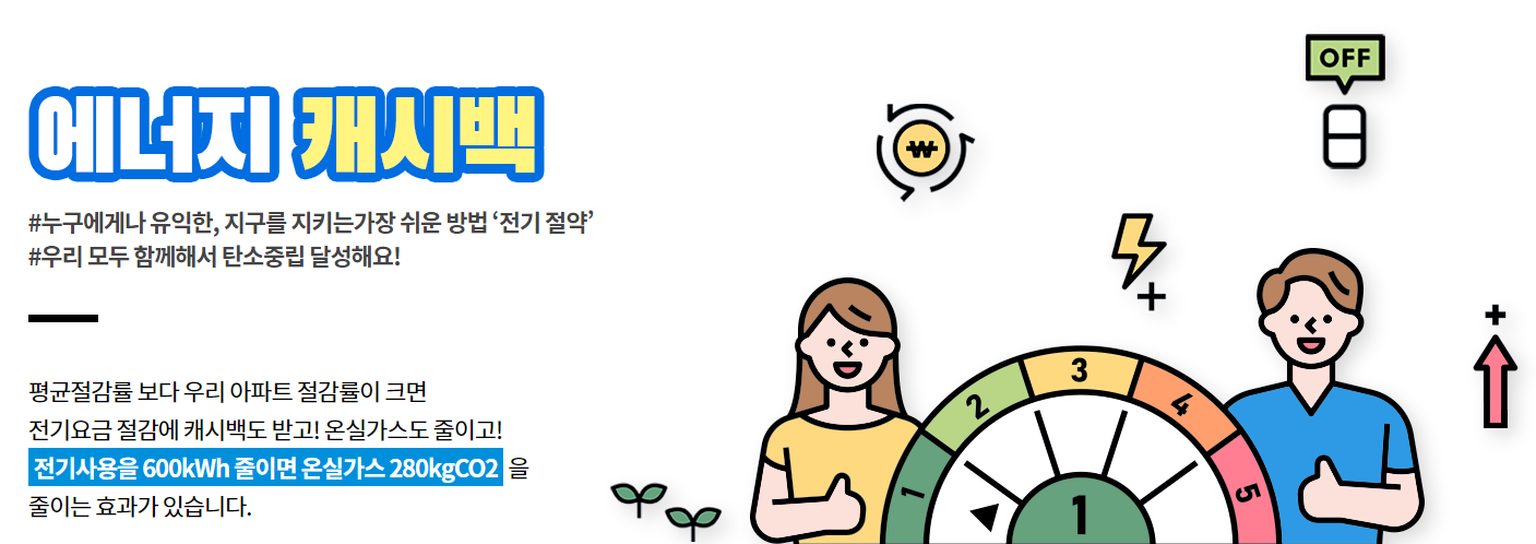 에너지 캐시백이란 전기 사용량을 현재 살고 있는 주변의 아파트 단지, 가구에 비해 상대적으로 많이 줄였을 경우에